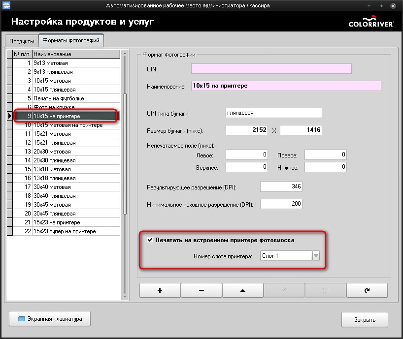 - Включите параметр "Печатать на встроенном принтере фотокиоска"