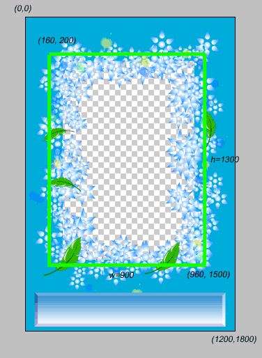 Можно вписывать фотографию в полный размер рамки, тогда координаты Left и Top устанавливаем равными 0, а размер области Width и Height устанавливаем равными размеру рамки (1200 и 1800 в нашем случае).