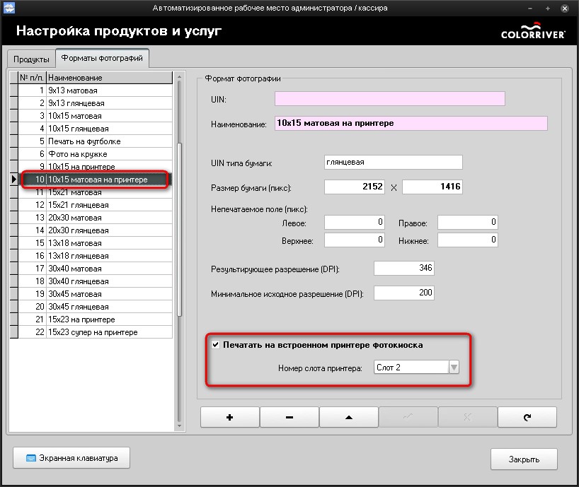 - Включите параметр "Печатать на встроенном принтере фотокиоска"
